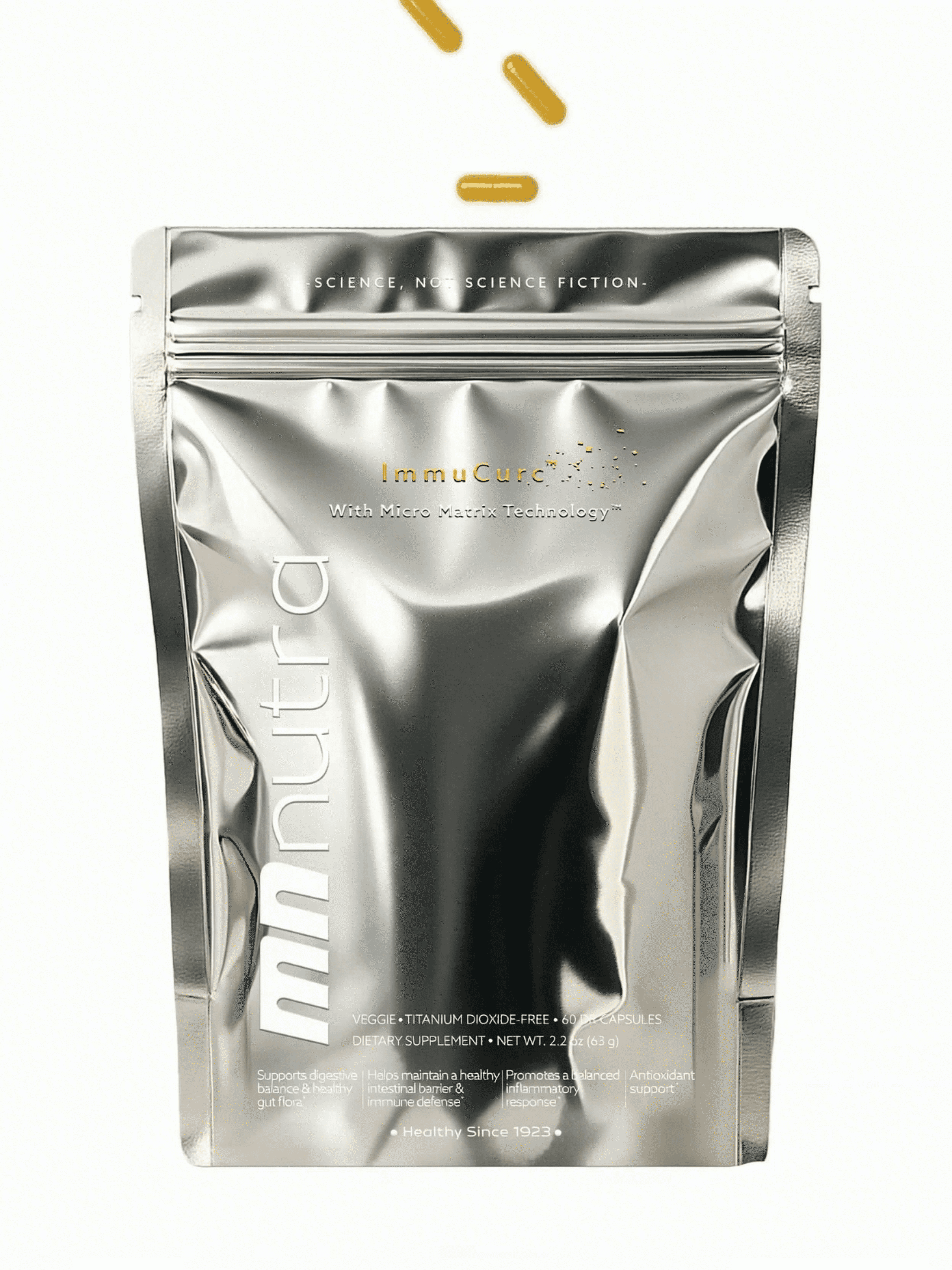 ImmuCurc™ is a comprehensive immune and gut-immune support formula combining NovoCurmin™ (patented micronized curcumin), micronized beta-glucans, and Saccharomyces boulardii. Built on MN Nutra’s Micro Matrix Technology™, ImmuCurc™ supports immune resilience, helps gut wellness, and a healthy inflammatory response