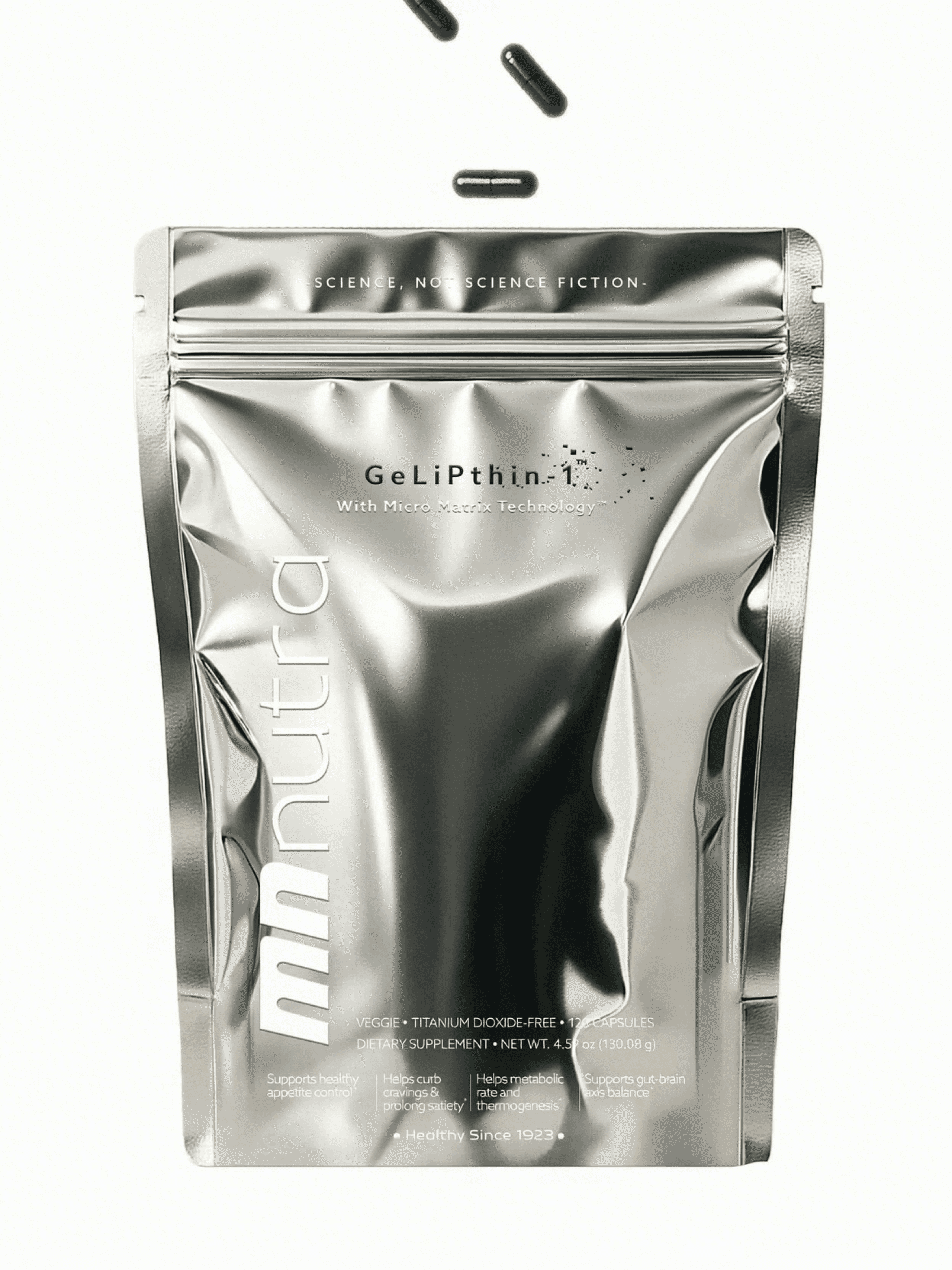 GeLiPthin-1™ is a metabolic enhancement formula designed to support healthy GLP-1 activity, appetite regulation, and glucose metabolism as part of a balanced lifestyle. Powered by MN Nutra’s Micro Matrix Technology™, it delivers key metabolic actives with enhanced bioavailability to support energy balance and metabolic efficiency.