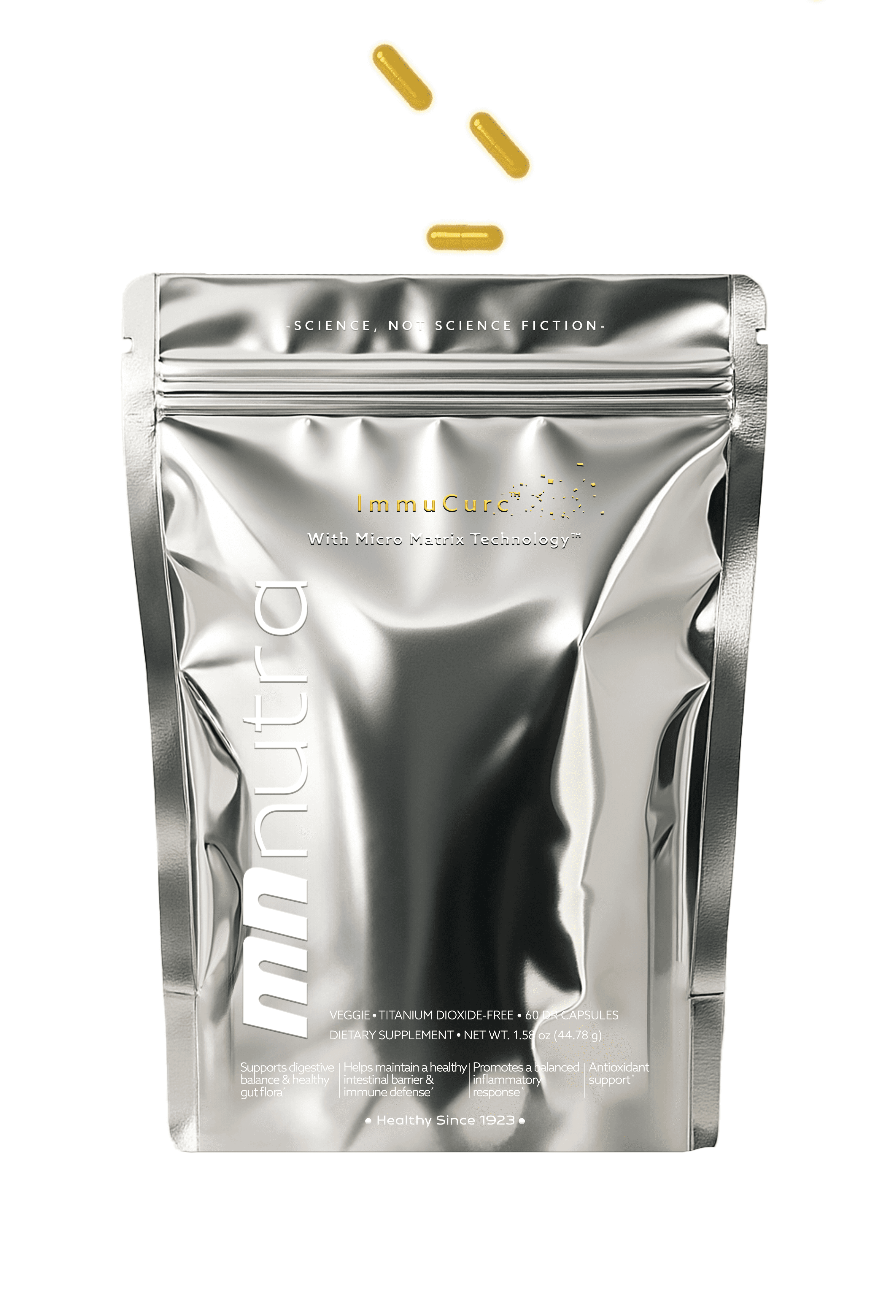 ImmuCurc™ is a comprehensive immune and gut-immune support formula combining NovoCurmin™ (patented micronized curcumin), micronized beta-glucans, and Saccharomyces boulardii. Built on MN Nutra’s Micro Matrix Technology™, ImmuCurc™ supports immune resilience, helps gut wellness, and a healthy inflammatory response